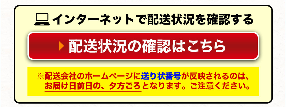 悪天候(積雪など)、災害、交通障害等の影響で、商品のお届けが遅延する可能性がございます。ご了承の上ご注文ください。